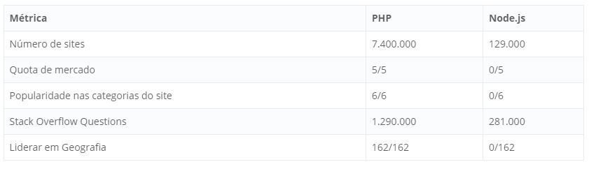 Algumas estatísticas impressionantes de PHP e Node.js